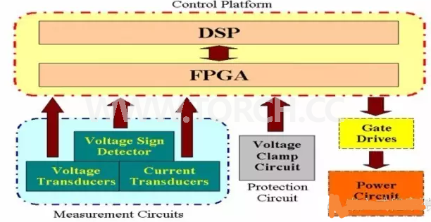 典型的結(jié)構(gòu)如下圖所示:主要包括控制平臺(tái),測(cè)量電路,功率電路,保護(hù)電路等