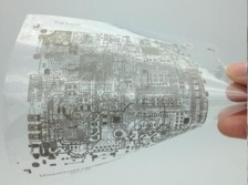 近日,蘇州納米所印刷電子研究部印刷電子工程中心科研人員與合作企業(yè)共同開發(fā)成功基于印刷電子技術制造原理的多層柔性印刷電路制備技術。圖片顯示了在PET基底上通過印刷制備的4層電腦主板電路,4層電路的總厚度小于0.1mm,印刷電路最小線寬0.1mm。該電路版具有很好的柔性、表面平整,層間電路有可靠的絕緣與導電連接。